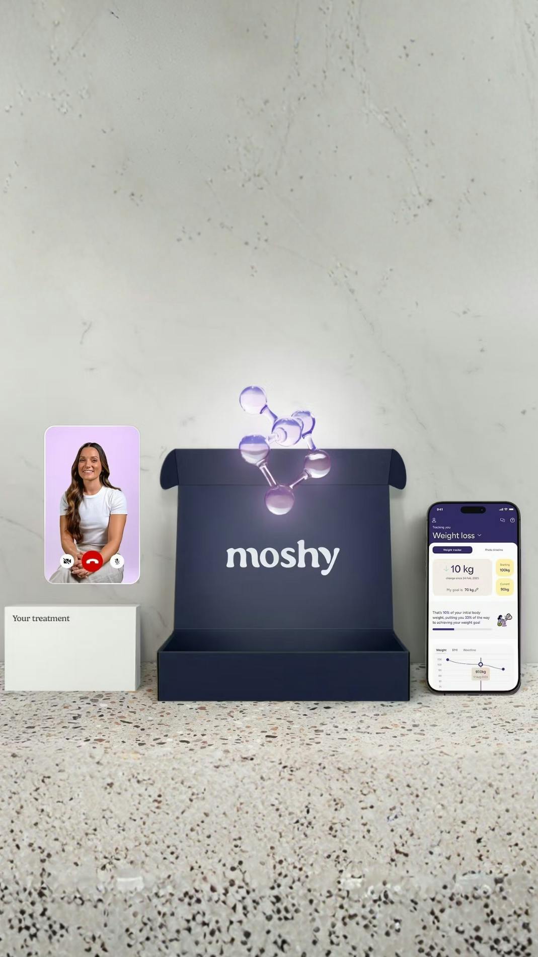 Your care team checks in regularly to review your progress, adjust your treatment if needed, and help you reach your goals safely and confidently. You’ll also have access to the team whenever you need, plus the Moshy weight loss community for extra motivation.