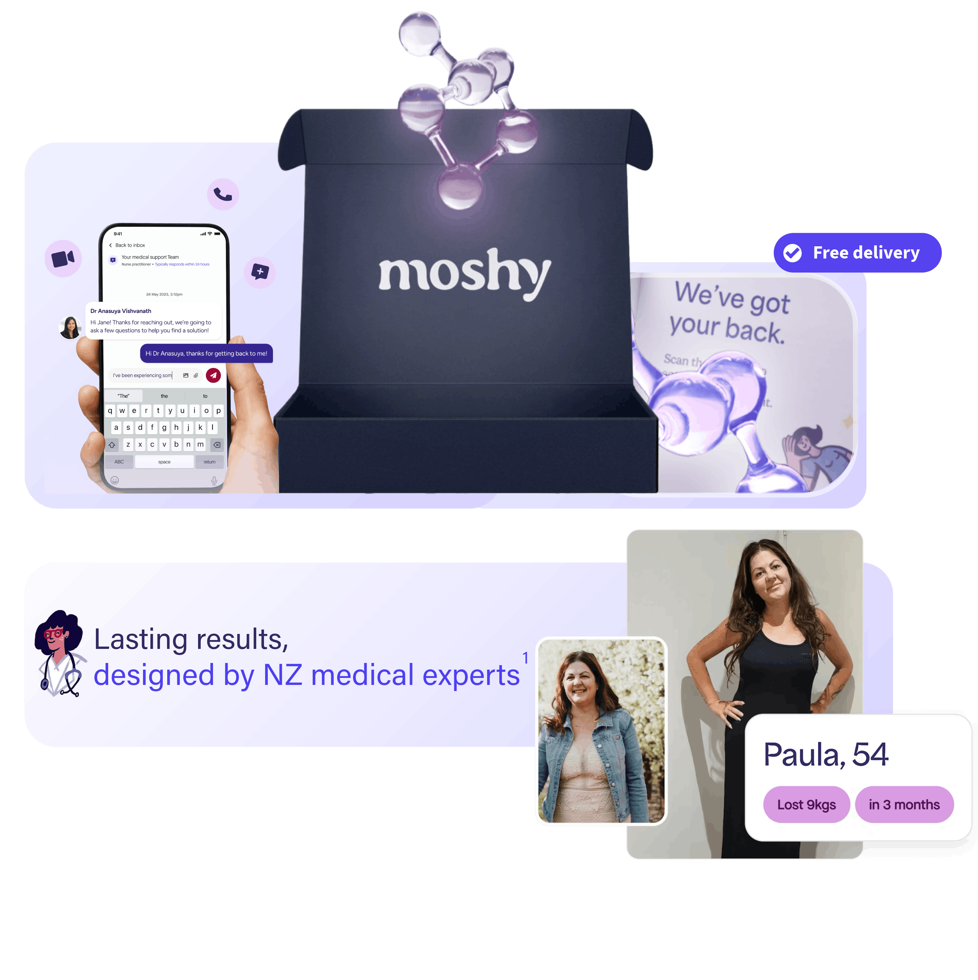 Moshy is an online healthcare service supporting women with medically guided weight loss care. We make it easier to access expert support, wherever you are in New Zealand.